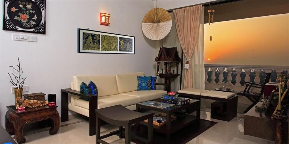 A typical Indian living room may contain furnishings such as a sofa, chairs, centre tables, and bookshelves, electric lamps and rugs.
