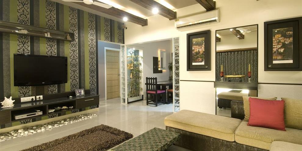 Often the dining area is a physical extension of the living area, and thus the room is aesthetically treated as one. Also most living rooms in India are equipped with a television.