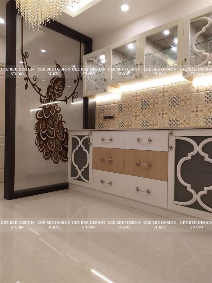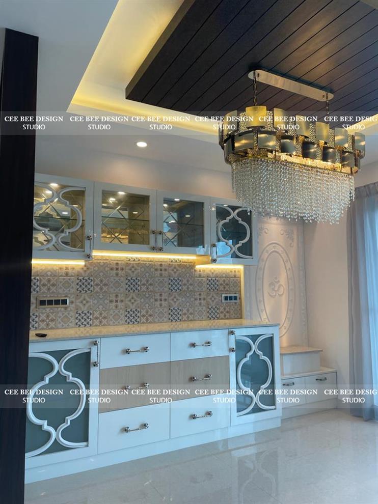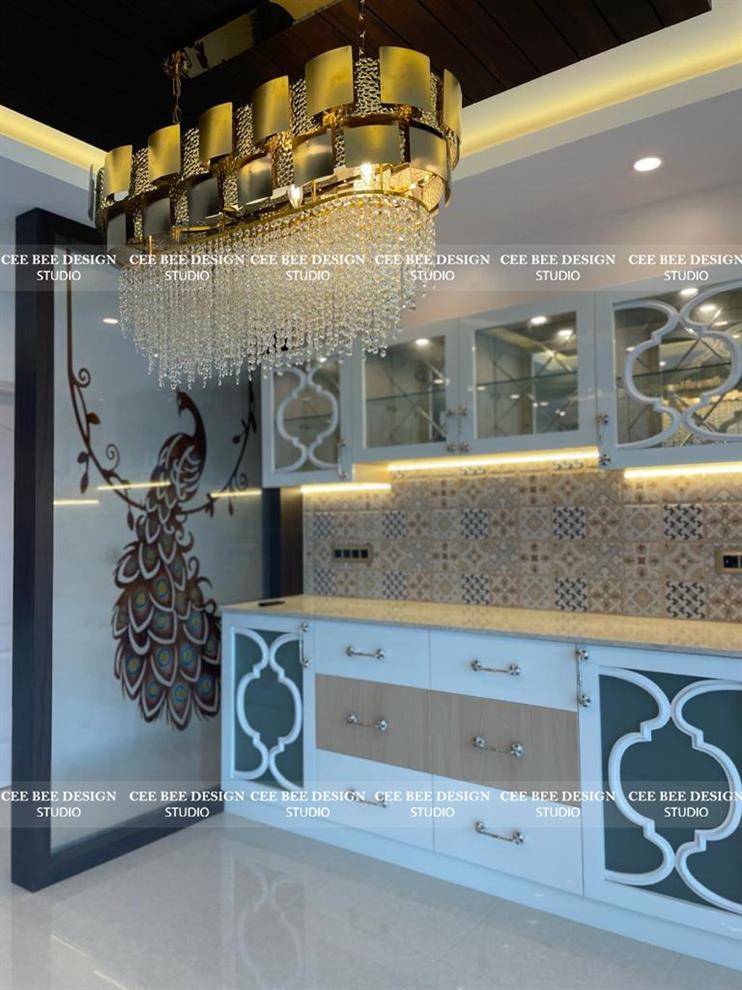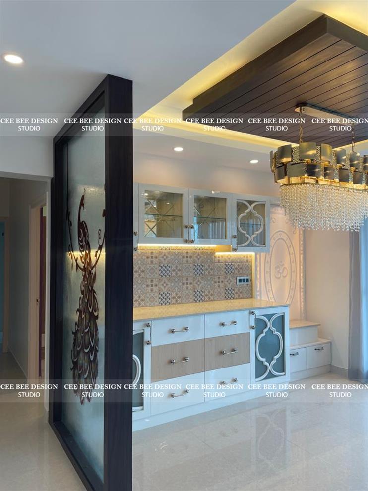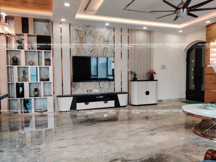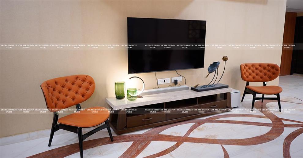 Often the dining area is a physical extension of the living area, and thus the room is aesthetically treated as one. Also most living rooms in India are equipped with a television.