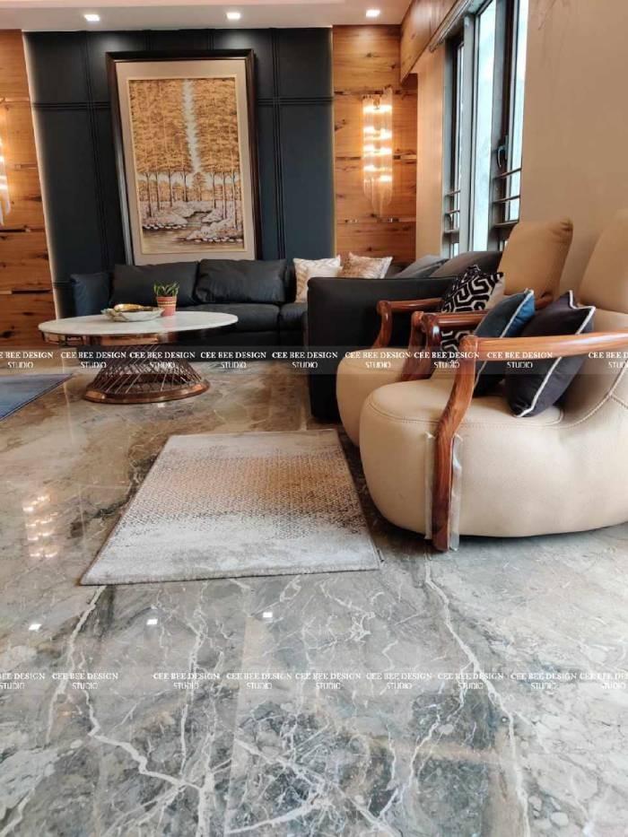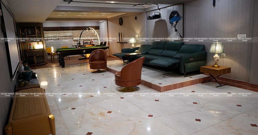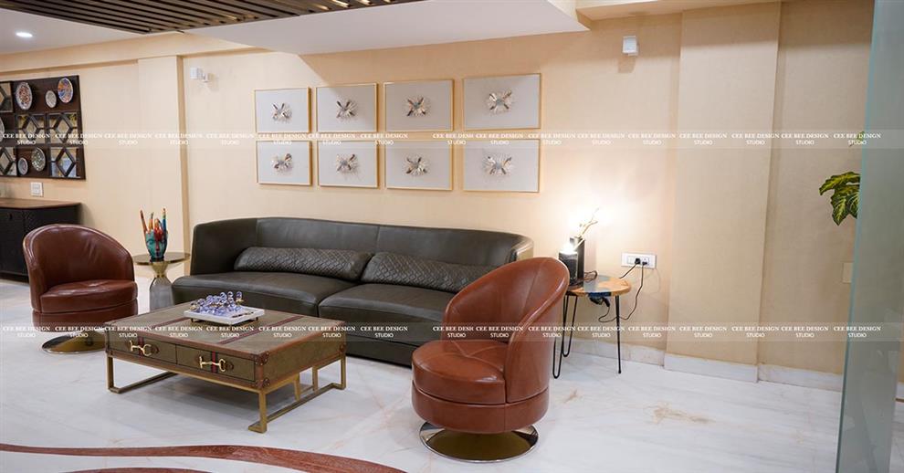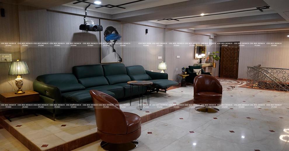 A typical Indian living room may contain furnishings such as a sofa, chairs, centre tables, and bookshelves, electric lamps and rugs.