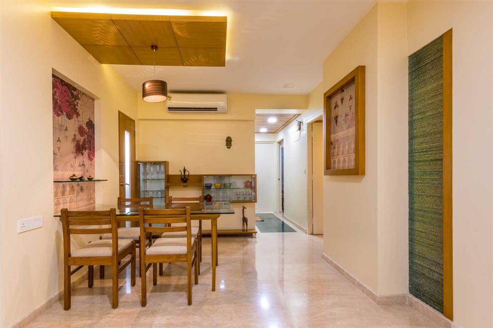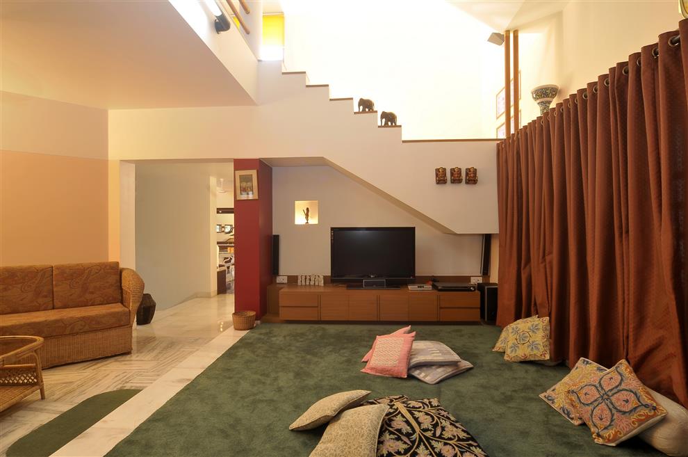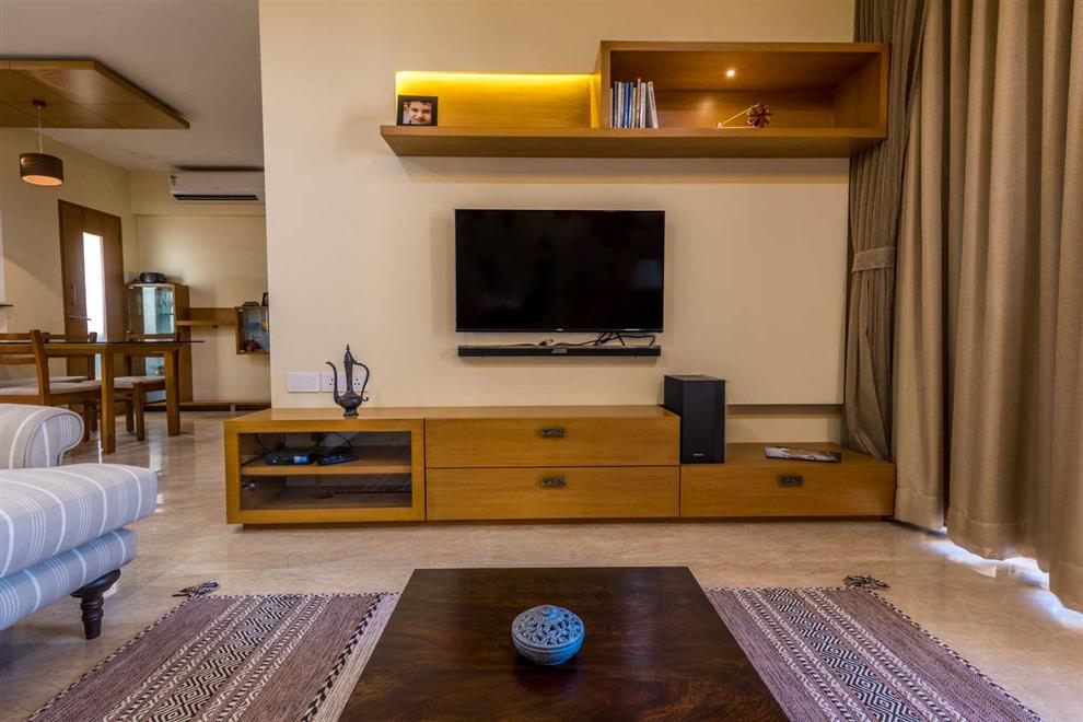 Often the dining area is a physical extension of the living area, and thus the room is aesthetically treated as one. Also most living rooms in India are equipped with a television.