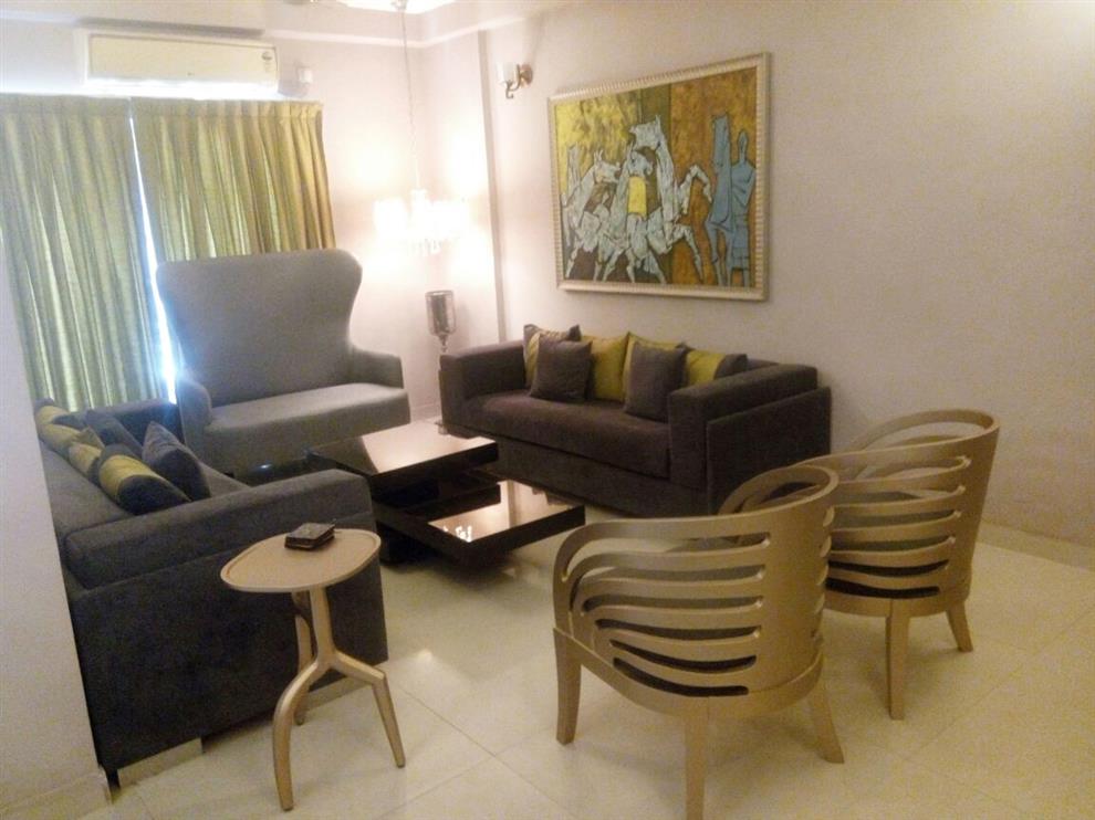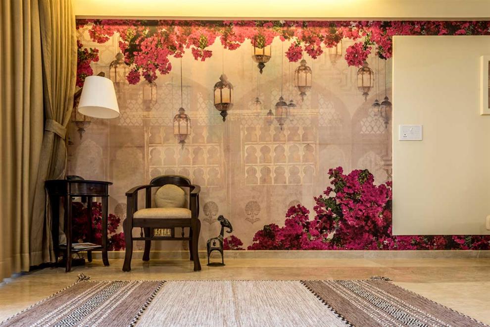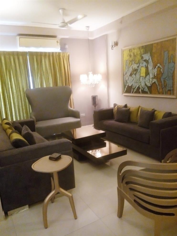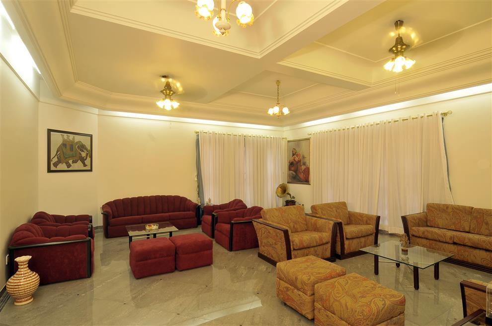 A typical Indian living room may contain furnishings such as a sofa, chairs, centre tables, and bookshelves, electric lamps and rugs.