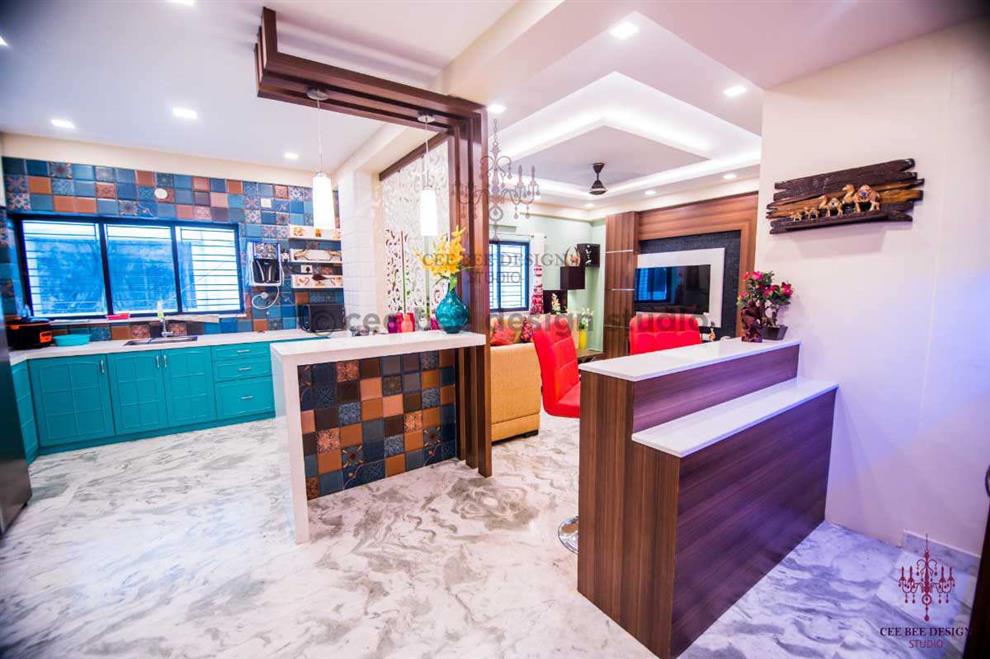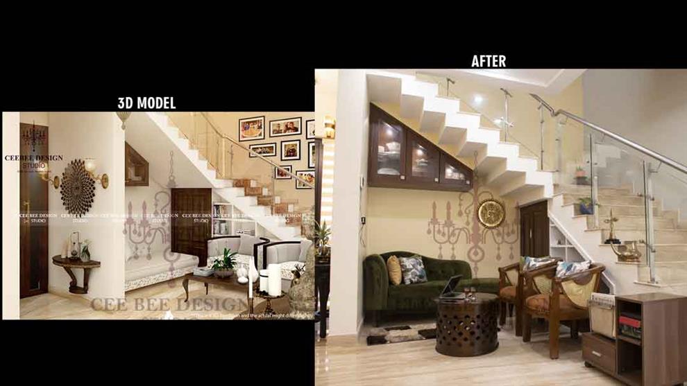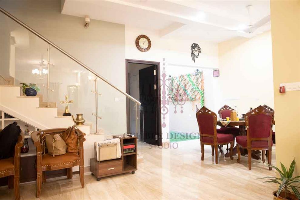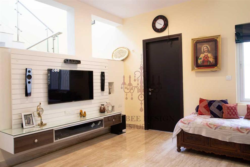Often the dining area is a physical extension of the living area, and thus the room is aesthetically treated as one. Also most living rooms in India are equipped with a television.