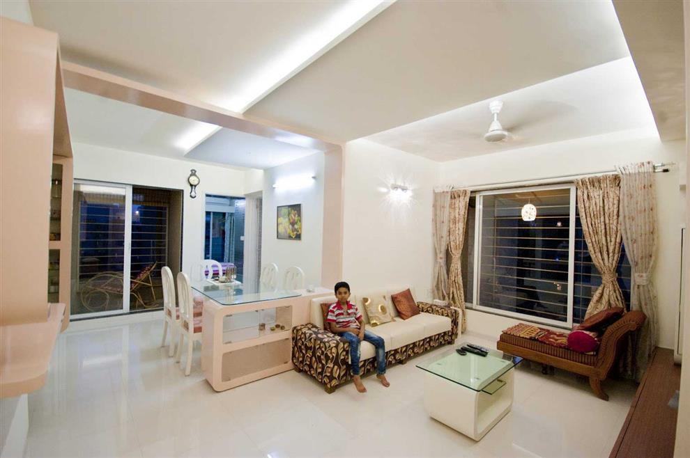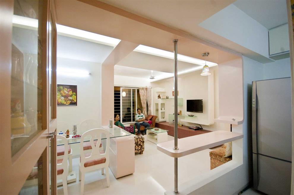 Often the dining area is a physical extension of the living area, and thus the room is aesthetically treated as one. Also most living rooms in India are equipped with a television.